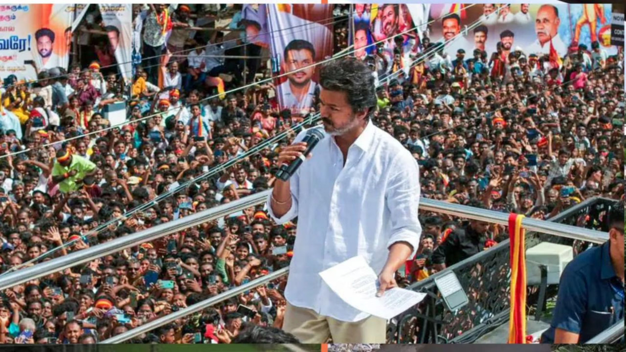 इरोड: साउथ फिल्म इंडस्ट्री के दिग्गज अभिनेता व राजनेता थलापति विजय ने गुरुवार को तमिलनाडु के इरोड जिले में एक जनसभा को संबोधित किया. यह 27 सितंबर को करूर में हुई भगदड़ के बाद उनकी पहली बड़ी रैली थी. इस रैली में विजय ने सत्तारूढ़ डीएमके पर तीखा हमला किया. विजय ने कहा कि डीएमके गलत राजनीति कर रही है.
