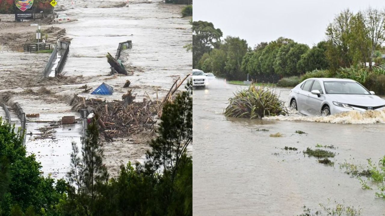 New Zealand Storm News: न्यूजीलैंड के दक्षिण द्वीप में गुरुवार को मूसलाधार बारिश और तूफानी हवाओं ने कहर बरपा दिया. भारी बारिश के चलते कई इलाकों में बाढ़ की स्थिति बन गई है और लोगों को सुरक्षित स्थानों पर पहुंचाया गया है.