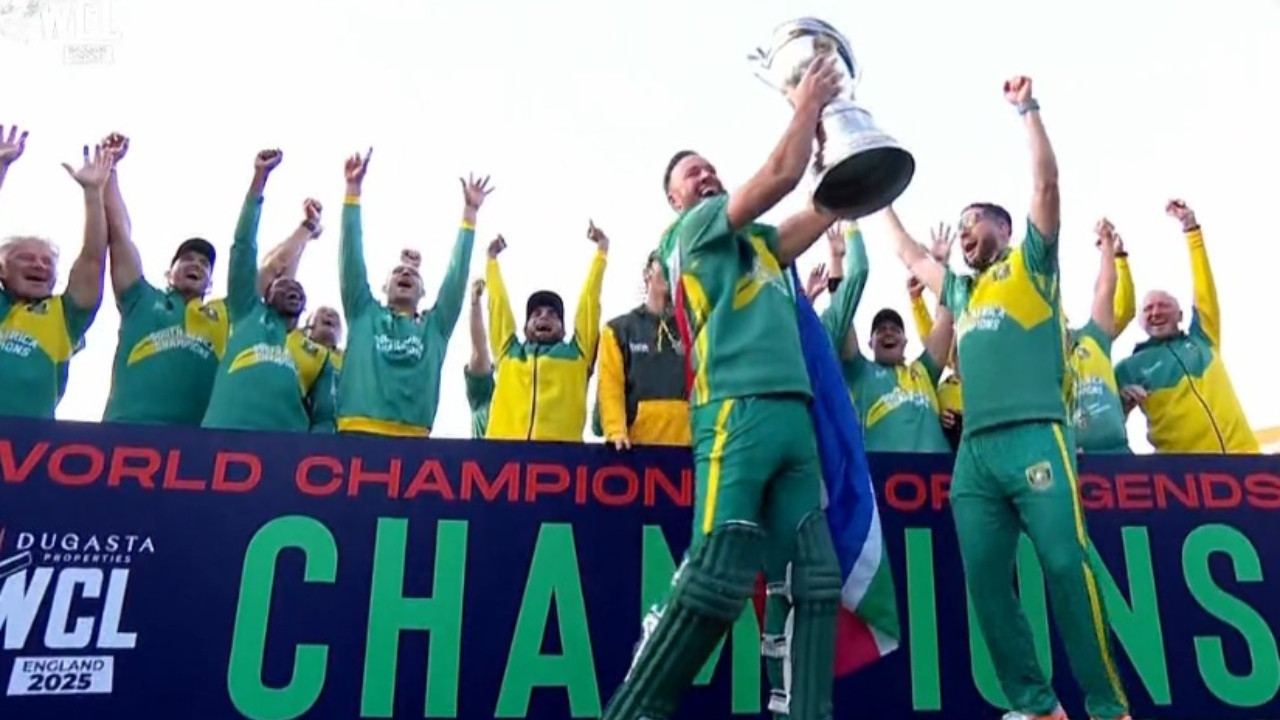 एबी डीविलियर्स ने आखिरकार साउथ अफ्रीका को चैंपियन बना दिया है. बर्मिंघम में आयोजित वर्ल्ड चैंपियनशिप ऑफ लीजेंड्स (WCL) 2025 के फाइनल में साउथ अफ्रीका चैंपियंस ने शानदार प्रदर्शन करते हुए पाकिस्तान चैंपियंस को 9 विकेट से करारी शिकस्त दी. इस रोमांचक मुकाबले में साउथ अफ्रीका की जीत के नायक रहे कप्तान एबी डी विलियर्स. हैमस्ट्रिंग इंजरी के चलते डी विलियर्स का एक पैर फिट नहीं था. मगर उन्होंने एक फाइनल में कमाल की बल्लेबाजी की.
