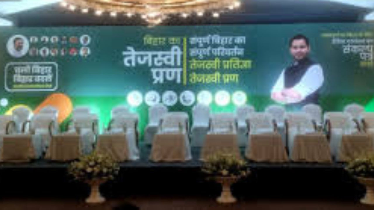 दरअसल, मंच के पीछे लगे बैनर में तेजस्वी यादव की बड़ी तस्वीर प्रमुख रूप से दिखाई दे रही थी, जबकि राहुल गांधी समेत महागठबंधन के अन्य नेताओं की तस्वीरें छोटे आकार में थीं. लेकिन चौंकाने वाली बात यह रही कि आरजेडी सुप्रीमो लालू प्रसाद यादव की तस्वीर पूरी तरह नदारद थी. इस पर अब विपक्ष ने तेजस्वी को निशाने पर ले लिया है.