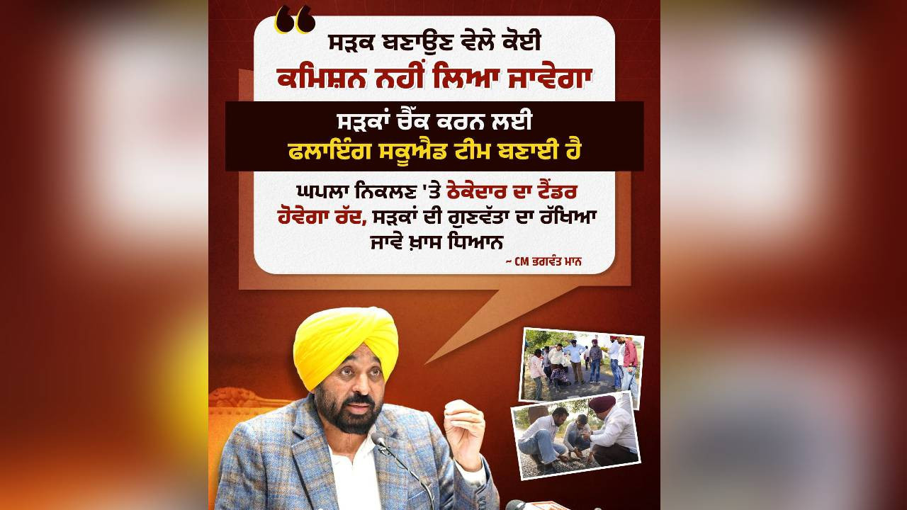 मुख्यमंत्री भगवंत मान की अगुवाई में पंजाब सरकार ने राज्यभर की सड़कों को टिकाऊ और सुरक्षित बनाने के लिए ऐतिहासिक कदम उठाया है. अक्टूबर 2025 में शुरू हुई ‘सीएम फ्लाइंग स्क्वाड’ पहल का मकसद 44,920 किमी सड़क नेटवर्क में पारदर्शिता और गुणवत्ता को मजबूत करना है. लॉकिंग सिस्टम ऐसा बनाया गया है कि ठेकेदार न केवल सड़क बनाएंगे, बल्कि पांच साल तक उसके रखरखाव के लिए भी जवाबदेह होंगे. पंचायत की संतुष्टि के बाद ही भुगतान की शर्त इसे और कड़ा बनाती है.