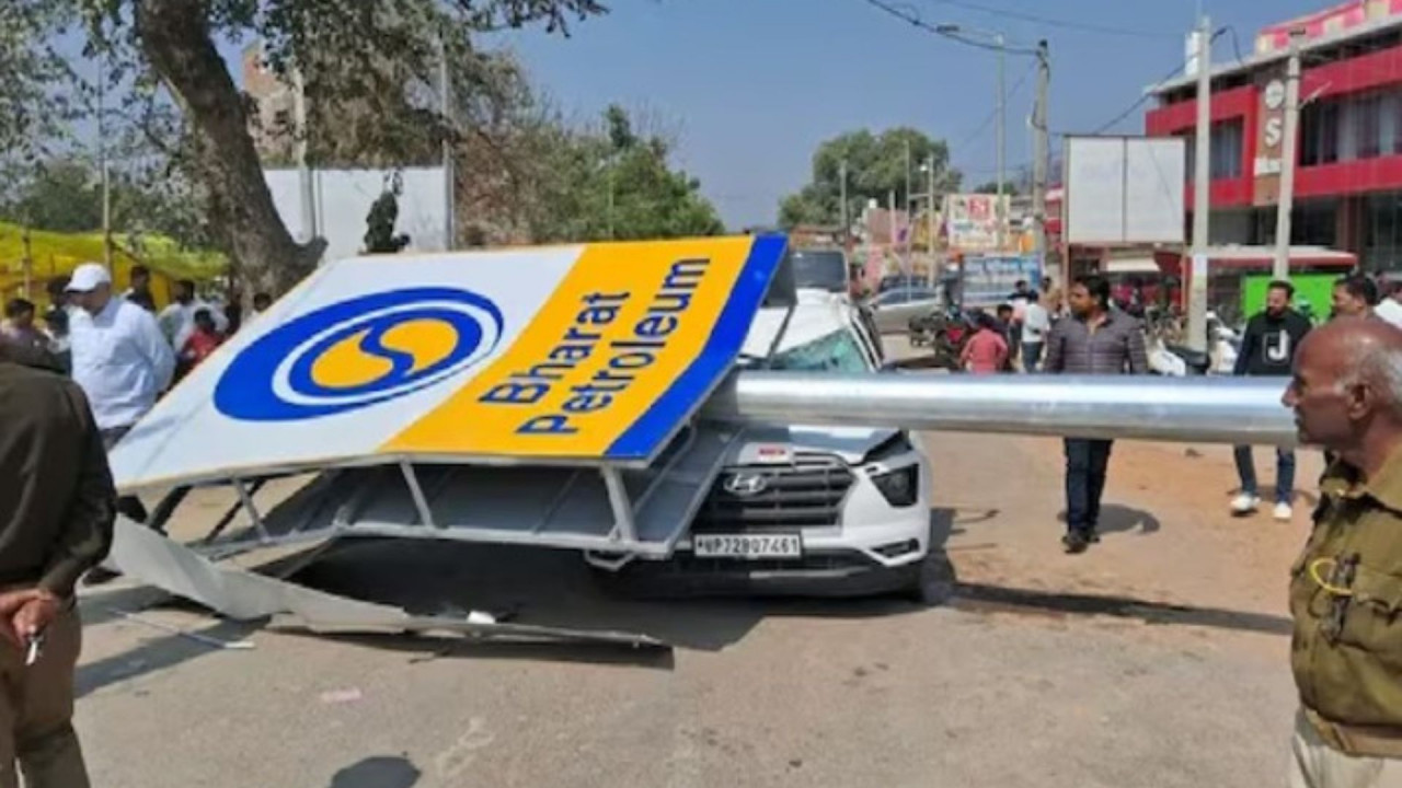 उत्तर प्रदेश के प्रतापगढ़ में रविवार को एक दर्दनाक हादसा हो गया. पेट्रोल पंप की होर्डिंग वाला पोल सड़क पर जा रही एक कार के ऊपर जा गिरा जिसमें समाजवादी पार्टी के नेता लाल बहादुर यादव की दर्दनाक मौत हो गयी.