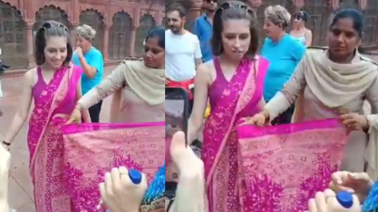 इस हालत को देखकर ताजमहल की सुरक्षा में तैनात महिला आरक्षी लक्ष्मी ने विदेशी पर्यटकों की मदद की थी. पुलिस महिला ने साड़ी पहनाने में फिर से मदद की. इसके साथ उन्होंने साड़ी पहनने का भी तरीका भी बताया था. इस दौरान विदेशी पर्यटक ने कैमरे में अपने एक्सपीरियंस भी शेयर किया.