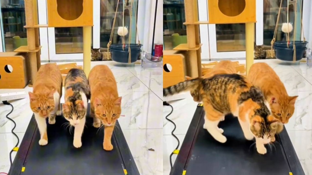 वायरल हो रहे वीडियो में तीन बिल्लियां नजर आ रही है. शुरुआत में दो बिल्लियां जिम में जॉगिंग करती दिखती हैं. कुछ ही देर बाद उन दोनों बिल्लियों को देखकर एक और बिल्ली जॉगिंग मशीन से जॉगिंग करनी शुरू करती है. फिर तो तीनों बड़े आराम से जॉगिंग मशीन पर जॉगिंग करती नजर आने लगती हैं. इस तरह बिल्लियां जॉगिंग कर रही हैं जैसे वो बहुत जिम में एक्सपीरियंस हो.