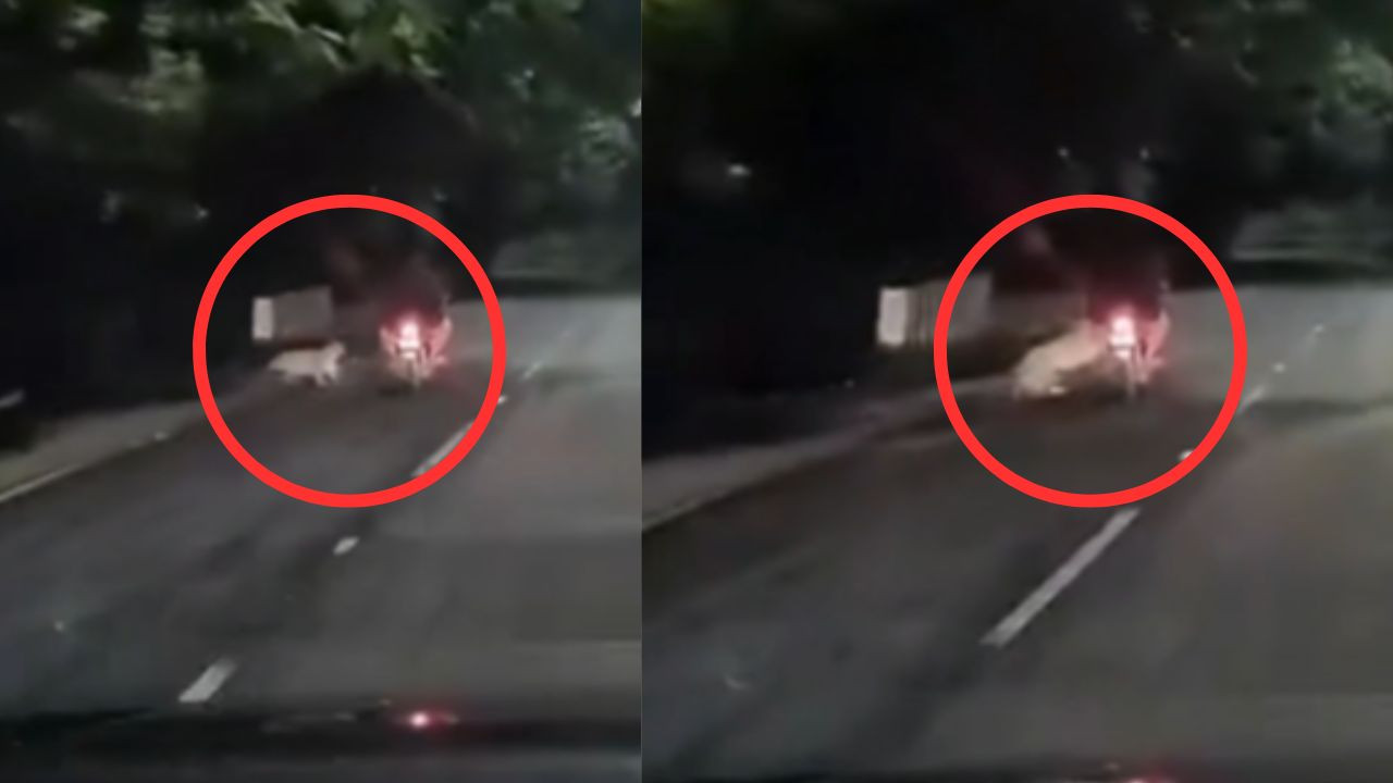वायरल वीडियो में दिखाई देता है कि रात के समय एक बाइक पर सवार दो लोग उस वक्त खतरे में पड़ गए, जब जंगल से अचानक एक तेंदुआ सड़क पर कूद पड़ा और उन पर झपटा. बाइक की तेज रफ्तार ने सवारों को तेंदुए के पंजों से बचा लिया. वीडियो में साफ देखा जा सकता है कि तेंदुआ बाइक की ओर दौड़ता है, लेकिन सवार ने गजब का संतुलन बनाए रखा और हादसे को टाल दिया. खबरों के अनुसार, यह घटना अलीपिरी से चेरलोपल्ली के रास्ते में हुई.